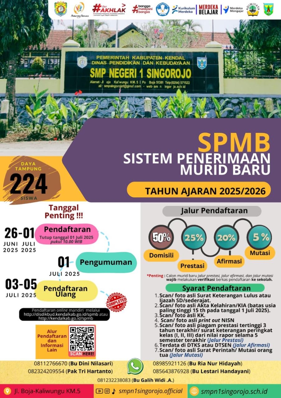 Link Pendaftaran : https://disdikbud.kendalkab.go.id/spmb atau https://kendalkab.go.id/spmb